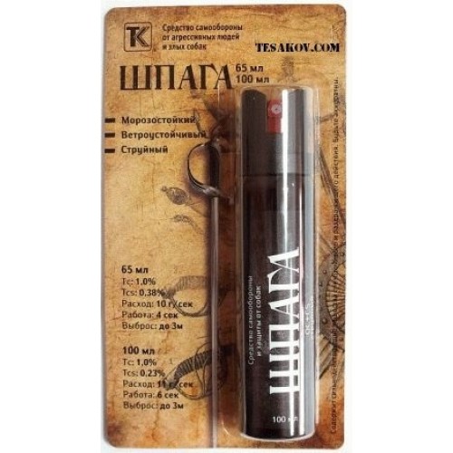 Газовый баллончик "Техкрим Шпага" 100 мл содержит 1000 мг. чистого капсаицина, экстрагированного из красного перца особо жгучих пород. Перечный ирритант ОС имеет болевое, слезоточивое и раздражающее действие, он эффективен против любых нападающих (в т. ч. пьяных и под воздействием наркотических веществ, а также против агрессивных собак). Помимо ОС, в баллончике содержится синтетический газ «Сирень» (CS), созданный для быстрой нейтрализации злоумышленников. CS добавляет к эффектам баллончика временную асфиксию, спазмы век и органов дыхания. Он действует максимально быстро, уже через 2-3 секунды выводя противника из строя!