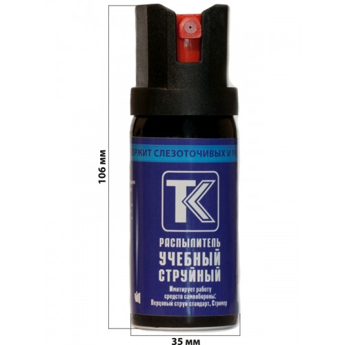Распылители Учебный струйный и Учебный аэрозольный предназначены для обучения правилам применения средств самообороны и могут быть использованы для тренировок по самообороне. Жидкий состав распылителей содержит краситель, позволяющий визуально оценить дальность и направление распространения струи или аэрозольного облака, образующейся при выходе содержимого. Следы жидкого состава теряют выраженную окраску в течение суток после применения. Для получения навыков эффективного применения струйных и аэрозольных средств самообороны содержимое баллона необходимо распылять по листам бумаги (не рекомендуется использовать ткани), закрепленным на вертикальной поверхности, на различных дальностях. Степень воздействия оценивается по интенсивности окрашивания бумаги. Внимание! Запрещается распылять содержимое распылителей в глаза и лицо человека! Распылитель имитирует работу струйных средств самообороны: «Перцовый струй Стандарт» и баллонов других производителей. Содержание жидкого состава: вода дистиллированная, спирт этиловый, натрия гидроокись, фенолфталеин. Тип распыления: струйный. Дальность: от 4 до 6 м. Время выхода: от 4 до 6 с. Рабочая температура: от 0 до +50°С. Размеры: 106х35 мм.