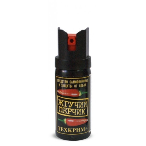 "Техкрим Жгучий" перчик 65 мл снаряжен популярным слезоточивым раздражающим веществом олеорезин капсикум (ОС) - экстракт натурального красного горького перца. Эффективность определяется используемым слезоточивым раздражающим веществом, его массой и концентрацией, дальностью и временем действия. Морфолид пеларгоновой кислоты (МПК) и олеорезин капсикум оказывают отпугивающее воздействие на собак. Вещество CS вызывает непереносимую боль в глазах, сильное слезоточивое действие, раздражение верхних дыхательных путей, жжение кожи лица. МПК оказывает воздействие на органы дыхания и сильное жжение кожи. Диаметр: 25 мм, высота: 98,5 мм. Масса жидкого состава (в среднем): 22 грамма. Тип распыления: А, пятно контакта на 1,5 метра: 40 сантиметров, эффективная дальность: 1,5 метра, время работы: 5 секунд (10 кратковременных нажатий). Рабочая температура: -10…+50°С. Рекомендуется применять на открытом воздухе.
