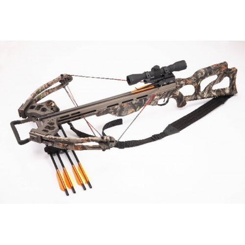 Комплектация: кивер, четыре карбоновые стрелы 20",22", 4х32 оптический прицел, ручной натяжитель, воск для тетивы, ремень.