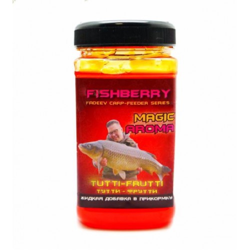Magic Aroma Tutti-frutti (тутти-фрутти) - представляет собой высокопитательный густой по консистенции сахарный субстрат ярко оранжевого цвета. Яркая ягодно-фруктовая ароматика данного продукта говорит о том, что создан он для ловли в летнее время с целевой направленностью приманивать карпов и сазанов. продукт эффективен в очень жаркую погоду и на смене сезонов.