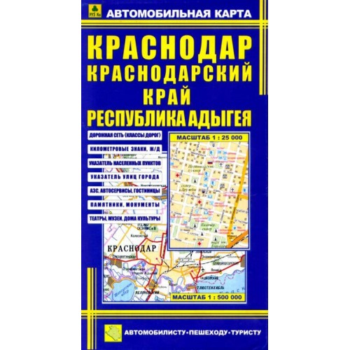 Информационное справочное пособие автомобильная карта Краснодар, Краснодарский край, республика Адыгея обязательно станет полезным источником информации любому автолюбителю, туристу или отдыхающему.
