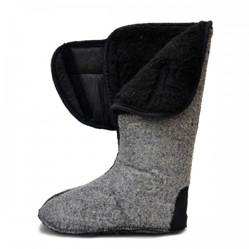 Дополнительное утепление дает многослойный вкладыш, более современный, удобный, износоустойчивый по сравнению с суконным вкладышем. Вкладыш не только отлично сохраняют тепло и поддерживают комфортный температурный режим даже при сильных морозах, но и обладают влагоотводящими свойствами, благородя чему конденсат выводится на поверхность галоши, а ноги всегда остаются сухими и не замерзают. Температура использования бахил Nordman New Red со вкладышами до -50 С. Структура вкладыша представлена несколькими слоями:1. Мягкий мех с использованием натуральной шерсти (не менее 50%); 2. Нетканое полотно с натуральными волокнами льна и шерсти –сохраняет тепло; 3. Фольгированное полотно – отражает тепло внутрь вкладыша, создает эффект «термоса»; 4. Поролон – обеспечивает дополнительную термоизоляцию; 5. Полиэфирная сетка – обеспечивает защиту от истирания. Дополнительно вставкой из винитола усилена пяточная часть.