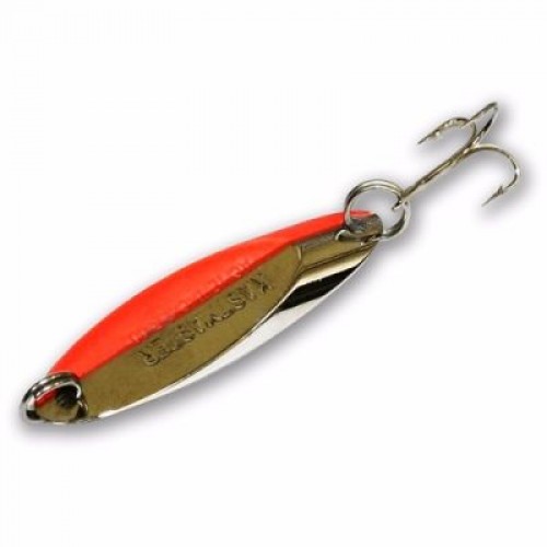 Более 70 лет американская фирма Acme занимается изготовлением колеблющихся блесен для спиннинговой рыбалки. Имея не очень большой ассортимент приманок, специалисты фирмы уделяли основное внимание их качеству. Проводя исследования в металловедении и металлообработке, им удалось подобрать медные сплавы, обладающие оптимальными характеристиками и наиболее подходящими для изготовления колеблющихся блесен. Специальное гальваническое и лакокрасочное покрытие позволяет использовать блесну для ловли, как в пресной, так и в морской воде. Блесна Acme Kastmaster разработанная более 50 лет тому назад, стала поистине легендарной блесной колебалкой. Идеально сбалансированная, изготовленная с высокой точностью и оснащенная прочными тройниками, данная модель служит образцом для подражания многим производителям менее знаменитых брендов. Используя проводку в придонных слоях воды блесны Acme Kastmaster, вы сможете с успехом ловить судаков и щук. Проводка блесны в верхних слоях воды приносит спиннингисту радость от победы над таким бойцом, как жерех. Блесна Acme Kastmaster может с успехом применяться при отвесном блеснении, как в летнее, так и зимнее время для подледной ловли.