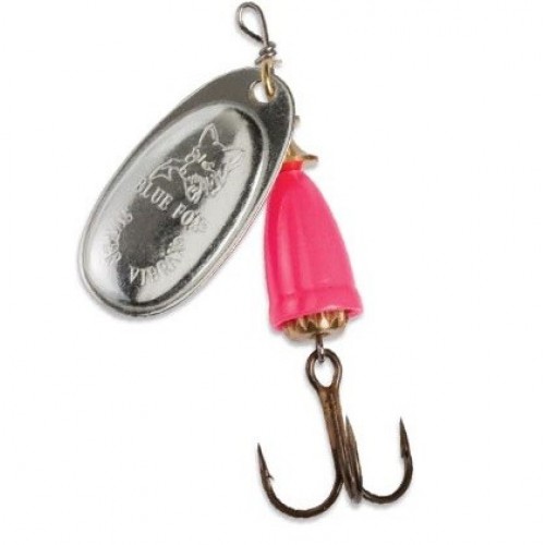 Еще одна вращающаяся блесна от компании Blue Fox – это Vibrax Fluorescent. Лепесток данных блесен вращается под углом 45 градусов, они показывают самые лучшие результаты на глубине 0,6-1,2 метра. Приманки созданы таким образом, чтобы защищать леску от перекручивания. Длинный латунный сердечник покрыт серебром или медью, далее слоем краски или другим цветным покрытием. Использованы невероятно прочные и острые тройники VMC. Игра блесны и без того привлекательная, сопровождается звуковым эффектом. Ось вращалок серии изготовлена из нержавеющей стали, а лепесток из латуни, покрытой серебром или медью. На лепестках краской нанесены соблазнительные цветные узоры.