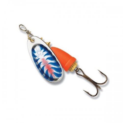 Блесна Blue Fox Vibrax Fluorescent имеет лепесток, вращающийся под углом 45 градусов, и лучше всего работает на глубине от 0.6 до 1.2 метра. Особый дизайн приманки защищает леску от перекручивания. Латунный длинный сердечник покрыт медью или серебром, сверху слоем краски или другим цветным покрытием. Тройник VMC предельной остроты отлично цепляет рыбу, хорошо прокален и невероятно прочен. Свободное вращение латунной оснастки вызывает звуковой эффект, когда колокол контактирует с сердечником. Ось приманки выполнена из нержавеющией стали. Лепесток отштампован из латуни, покрыт медью или серебром. Цветной узор нанесен краской.
