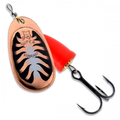Еще одна вращающаяся блесна от компании Blue Fox – это Vibrax Fluorescent. Лепесток данных блесен вращается под углом 45 градусов, они показывают самые лучшие результаты на глубине 0,6-1,2 метра. Приманки созданы таким образом, чтобы защищать леску от перекручивания. Длинный латунный сердечник покрыт серебром или медью, далее слоем краски или другим цветным покрытием. Использованы невероятно прочные и острые тройники VMC. Игра блесны и без того привлекательная, сопровождается звуковым эффектом. Ось вращалок серии изготовлена из нержавеющей стали, а лепесток из латуни, покрытой серебром или медью. На лепестках краской нанесены соблазнительные цветные узоры.