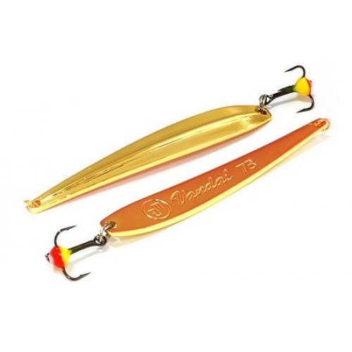 Узкая, прогонистая «вертикалка» с ярко выраженной гранью-килем на лицевой стороне. Обладает агрессивной «осыпающейся» игрой, с незначительным отклонением от центра. Уникальной особенностью Vandal является тот факт, что блесна отлично работает, как с креплением тройника к узкой части блесны, так и наоборот. Блесна универсальная и отлично ловит любого хищника: сига, щуку, окуня, хариуса, судака и т.д., в размере 7см/9,2г приманка идеальна для ловли «клыкастого».