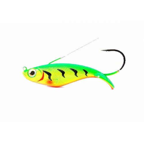 Блесна практически полный аналог Rapala Minnow Spoon RMS07 CCHF, только легче на 1 грамм и ярче расцветкой. Использован огромный одинарный крючок и одинарный усик. Заглубление 0.1-0.5 метров.
