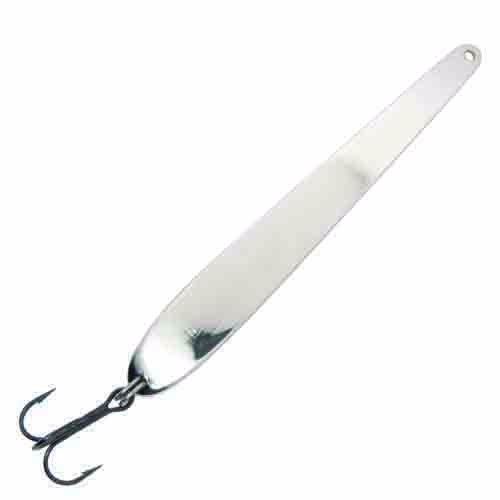 Блесны Salmo Model N с тройником - специализированная блесна для ловли судака. Характеризуется длинным и узким телом с центром тяжести в головной части блесны. Обладает настоящей «судаковой» игрой – с небольшим отклонением при планировании. Рекомендуется для ловли в водоемах с течением и без него. Вертикальные блесны комплектуются подвесным тройником Owner.