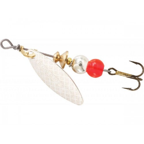 Mepps Aglia Long, как и Aglia — одна из первых блесен французского производства. При вращении угол отклонения лепестка от оси составляет 30°.
