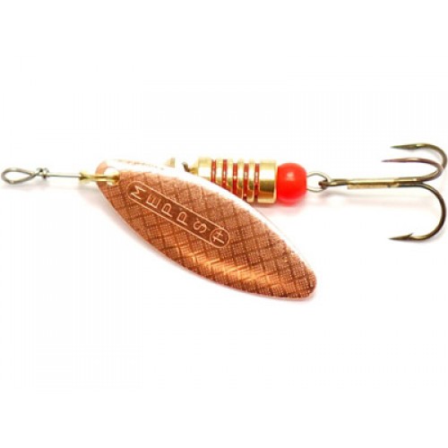Mepps Aglia Long, как и Aglia — одна из первых блесен французского производства. При вращении угол отклонения лепестка от оси составляет 30°.