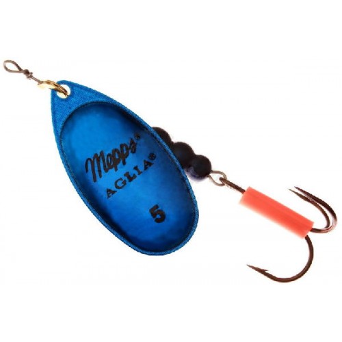 Лепестки MEPPS AGLIA PLATINUM окрашены в зеленый, синий и красный цвета. Они имеют глянцевую поверхность и напоминают расцветки хитиновых покровов насекомых. Аналогично окрашены сердечники блесен. Несмотря на рекомендации по их использованию, связанные с такими факторами, как сезон ловли, прозрачность воды, глубина и т.п., опытные рыболовы-практики советуют чаще экспериментировать с данным видом приманок. Нередко, AGLIA PLATINUM преподносит сюрпризы, о которых не приходилось и мечтать. Оснащена крючком тройником.