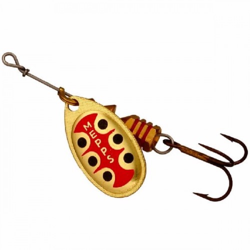 Грузик сердечника у AGLIA TW имеет внутреннюю резьбу с очень крупным шагом. Проволочная ось завершается колечком для крючка, сопряженным с пружинной шпилькой. Находясь в теле груза, пружинная шпилька упирается в уступ крупной резьбы. В данном случае шестигранный грузик служит винтовым замочком. Освобождение шпильки осуществляется простым свинчиванием груза, а возвратная фиксация — вдавливанием шпильки в его тело. Это простой, но очень надежный узел крепления (не разрушается даже при значительных нагрузках). AGLIA TW — настоящий клад для любителей экспериментов на водоемах. Рыболов получает возможность быстро укомплектовать вращалку пластиковой рыбкой, виброхвостом, твистером или просто тройником с мухой подходящего цвета. Кроме того, это идеальный вариант для создания всевозможных тандемов из вращающихся блесен или для замены тройника на одинарный крючок с защитной петелькой при ловле на закоряженных участках водоемов. Цвета лепестков: серебряный, золотой и медный.