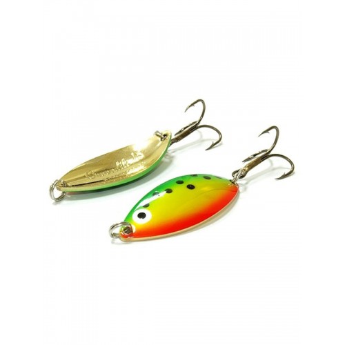 За основу была взята классическая модель шведской модели фирмы ABU. Она - лидер среди длинного модельного ряда "колебалок" вообще. При этом универсальна и отлично подходит для ловли всех видов хищников на всех водоемах. При проводке активно играет, чем очень раздражает хищника. Размер также универсальна и подходит для любого крупного или мелкого хищника. По этой модели, заслужившей за многие годы признание рыболовов Северо-Запада и не только, имеются фото- и видеоматериалы успешной ловли лосося в реках Карелии, Кольского полуострова, а также и других видов хищных рыб в различных водоемах страны, в том числе и на р. Ахтуба в нижнем течении Волги.