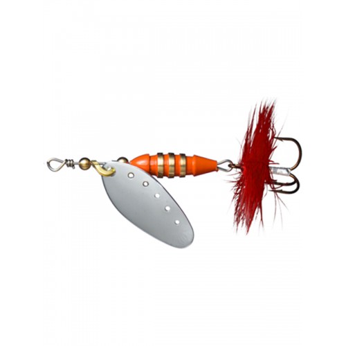 Модель работает и «на слух» и на зрение добычи: вызвать интерес у подводных обитателей призваны яркая оранжевая окраска сердечника с поперечными полосами (которые так заманчиво поблескивают), мушка на тройнике. Блесна Myran Toni демонстрирует отличную летучесть, так как имеет сбалансированный вес и выверенную форму. Одно из главных достоинств этой «вертушки» - акустический лепесток. При движении воды через отверстия, создается дополнительный шум, привлекающий рыбу. Опытные рыболовы пятиграммовые «вертушки» используют на форель и окуня, 18-граммовые на судака, 7 и 12 граммов – «щучий» вес.