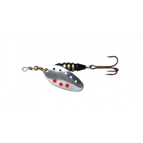 -одна из лучших блесен компании Myran. Удлиненный точеный груз и продолговатый лепесток. По краю лепестка идут несколько отверстий, обеспечивающих дополнительный шумовой эффект. Блесна заводится уже при первом обороте катушки. Изготавливают 4 типоразмера весом от 5 до 18 граммов. Варианты 5 и 7 г - отличный выбор для ловли окуня; более тяжелые хорошо работают на течении и небольшой глубине.