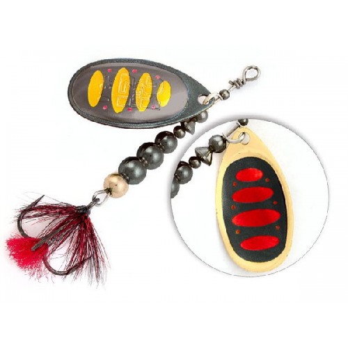 отличается от других моделей блесен совсем иным строением сердечника. У Ball Concept он состоит из нескольких шариков разного диаметра. Такая конструкция наборного сердечника смещает центр тяжести блесны к задней части тела. Такое смещение положительно влияет на точность и дальность осуществляемого заброса. На реакцию хищника положительно влияют и колебания, которые генерирует проводка блесны в воде.