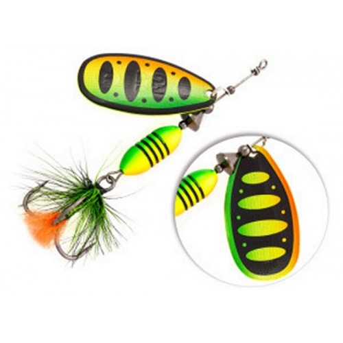 Конструктивно серию вращающихся блесен Pontoon21 Ball Concept INDI-RAH ничего неотличает серии Ball Concept. Отличие в оформлении лепестка. На лепесток серии Ball Concept INDI-RAH насенены насечки, иллюзия чешуи. А в остальном, как и у полюбившейся Ball Concept - сердечник наборный, состоящий из нескольких шариков разного диаметра. Именно за счет сердечника центр тяжести блесны несколько иной, он чуть смещен к задней части тела, что положительно сказывается на дальности и точности заброса. Кроме того, при проводке блесны в водной толще генерируются несколько иные колебания, влияющие на реакцию хищника.