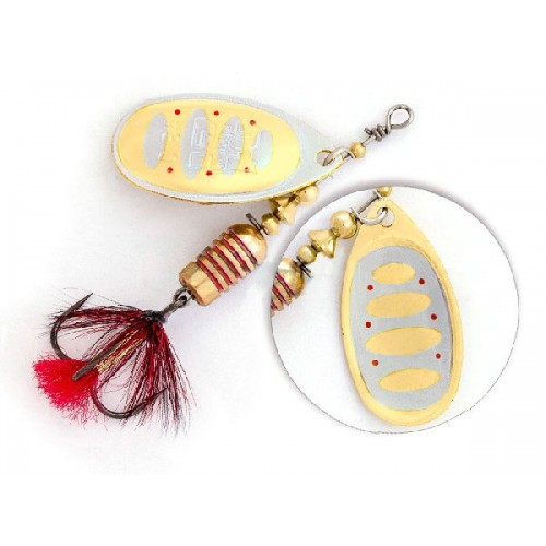 Лепесток блесны прежде всего отличается своим декором – он двусторонний и к тому же еще и реверсивный. При вращении лепестка удалось добиться оригинального эффекта, близкого к объемному изображению. Хищник видит мельтешащий провоцирующий рисунок лепестка под любым углом обзора. Это ли не повод для атаки?