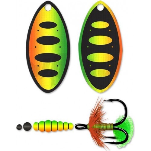 Лепесток блесны при малейшем движении начинает вращаться. Поэтому блесна подходит для проводки не только на высоких скоростях, но и на самых малых. Если блесна ударяется о какое-либо препятствие и вращение лепестка сбивается, то оно практически сразу же восстанавливается.