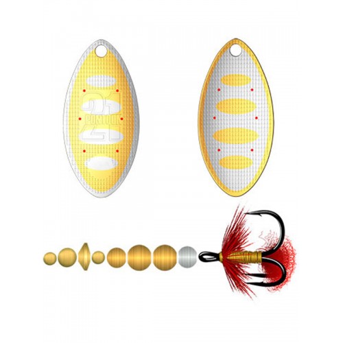 Trait – это самостоятельная приманка с лепестком, который разрабатывался «с нуля». Он шире лепестка Mepps, сильно закруглен по краям и имеет совершенно другую форму выпуклости. Лепесток блесны начинает вращаться при малейшем движении, ход его очень легкий, частота вращения – высокая. Очень важно, что блесна способна работать не только на больших и средних скоростях проводки, но и на самых малых, благодаря чему ее можно провести в любом горизонте – у дна, в толще воды и у самой поверхности. Если вращение лепестка сбивается, что может произойти при ударе о препятствия, то оно молниеносно восстанавливается. При подъеме блесны со дна она начинает стабильно играть на удивление быстро. Точные измерения, конечно, провести трудно, к тому же все зависит от различных факторов, но в среднем для «запуска» лепестка достаточно около 10 см проводки после отрыва от дна. А сочетание этой особенности с возможностью удержания блесны в придонном слое гарантирует качественный облов намеченного участка.