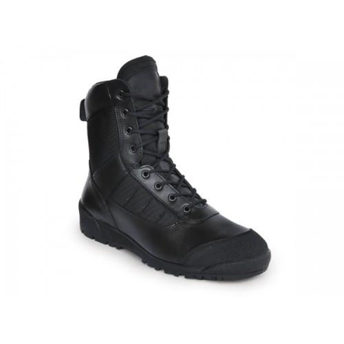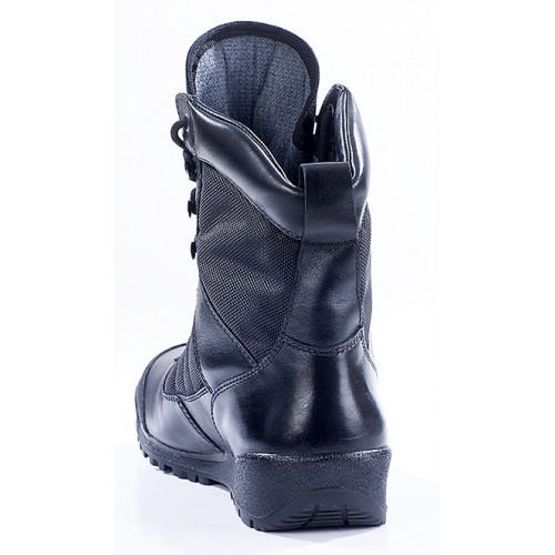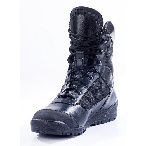 Ботинки Бутекс "Вайпер" черные, верх изготовлен из кожи и высокопрочной ткани из текстурированной нейлоновой нити. Подкладка сетка ламинированная. Подошва каучук повышенной износостойкости (Италия). Метод крепления подошвы клеевой, супинатор металлический. Подносок и задник усилены, из термопластического материала TECNO GI (Италия). Стелька двух слойная. Носочная часть укреплена кожей "Матрикс". Высота берца разная, причем задняя часть конструктивно выполнена ниже передней, что также придает ботинку, столь любимый многими "тактический" внешний вид, делая его похожим на высокие кроссовки.