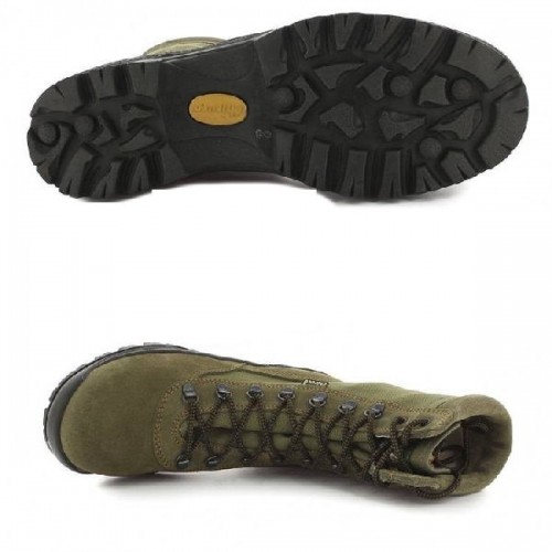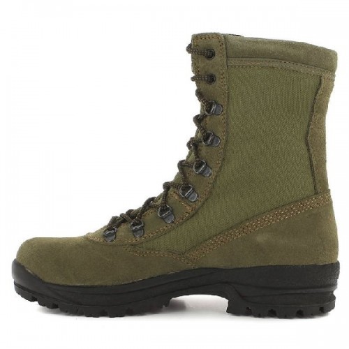 Удобные легкие ботинки для летнего сезона (чаще всего приобретаются для сафари)! Комбинация натуральной кожи для прочности и легкой тканевой вставки Cordura для увеличения дышащих качеств ботинка в жару. Крючки и кольца из нержавеющей стали защитят от врезания шнурков в кожу ботинка. Стелька состоит из двух слоев различной плотности. Эта комбинация обеспечивает дополнительное удобство. Влага отводится в нижний пористый слой стельки, а антибактериальная пропитка предотвращает появление неприятного запаха. Подошва разработана из натурального каучука, что обеспечивает высокое сцепление и отличную устойчивость на пересеченном рельефе. Амортизационные свойства подошвы максимально предохраняют ваши суставы от нагрузок. Крой ботинка с усилениями на пятке, мысе и под шнуровкой увеличивает долговечность и придает дополнительную устойчивость (защита от травм голеностопа). Высота ботинок удовлетворит высоким требованиям, предъявляемым к трекинговой обуви для охоты в жаркое время года, - песок не попадёт внутрь ботинка и насекомые не смогут прокусить тканевую часть ботинка. Температурный режим использования от +5С до +30С. Исполнение швов внахлёст позволит избежать Вам разрывов, а вот многие производители стали практиковать швы встык на тесьме, которые служат не более одного сезона и текут реками внутрь ботинка(кто хочет купить дешево – всегда купит кота в мешке). Не забывайте и о еще одной проблеме - по данным опроса обувных мастеров Москвы, который провели "Известия", главный враг нашей обуви - собаки. За год они сгрызают даже больше пар обуви, чем гибнет от химических реагентов и плохих хозяев. Собачьи зубы и когти чаще всего впиваются в новую и, предпочтительно, фирменную обувь из натуральной кожи. Испанские мастера делают специальное испытание имитирующее подобные нагрузки – ботинок помещают в центрифугу с битым стеклом и вращают в течении нескольких часов. Каждая модель получает “билет в жизнь”, если выдерживает нагрузку соответствующую своей толщине, в противном случаи модель дорабатывается. Мало кто задумывается, но каблук обязателен для ботинок активного использования (охота, рыбалка, туризм). Он позволяет увеличить проходимость и разгрузить мышцы стопы (защита от плоскостопия). Самым ярким примером этого служит указание Александра Македонского использовать воинам в дальних походах сандалии с небольшим каблуком (полководец заметил что солдаты “на каблуках” проходят намного большие дистанции).