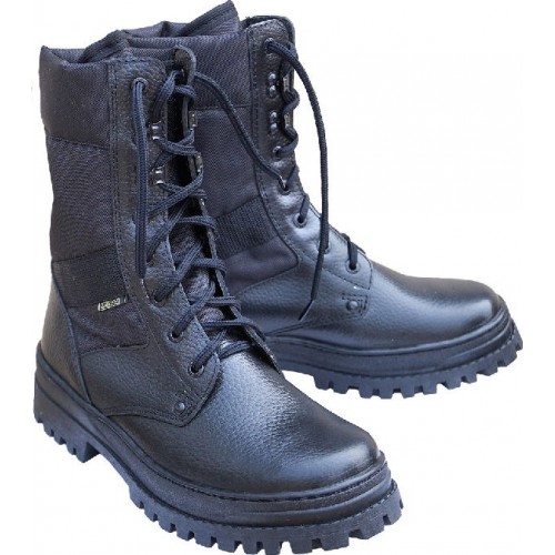 Высокопрочная модель ботинок предназначена для использования силовыми и охранными структурами. Изготовленные из кожи с высоким процентом содержания жира, они не пропускают воду внутрь, а потовыводящая внутренняя подкладка выводит влагу, образующуюся внутри обуви. Верх: хромовая кожа, подошва: термоэластопласт.