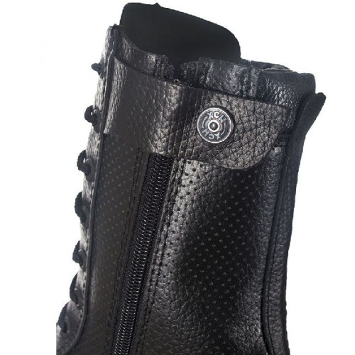 Ботинки ХСН Ратник с перфорацией подходят для активного отдыха или туризма даже в летнюю жару. Верхняя часть ботинок перфорирована, что позволяет ноге «дышать». Комфортная температура их эксплуатации - от +5° до +25°С. Обувь изготовлена из натуральной кожи КРС хром , обладающей повышенной влагостойкостью. Подошва ТЭП - износостойкая, с высокими показателями грунтозацепляемости.