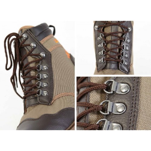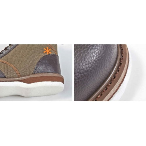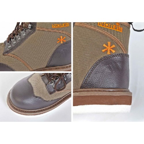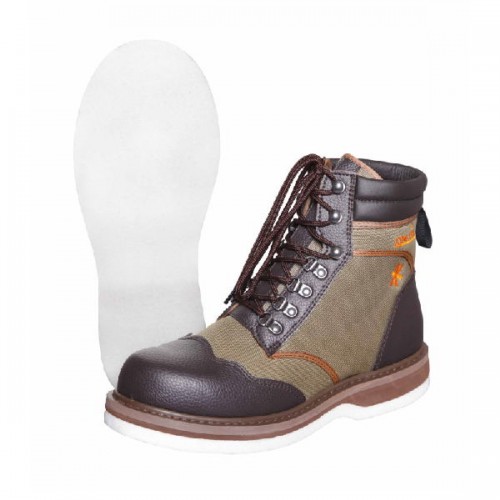 Легкие и прочные забродные ботинки. Материал ботинок на мыске и пятке усилен искусственной кожей (ПВХ). Ботинки хорошо фиксируют и поддерживают ступни ног при передвижении по неровному дну. Подошва сделана из специального прочного войлока и материала EVA, что повышает ее эластичность и прочность, и значительно снижает риск поскользнуться при передвижении по мокрым камням.