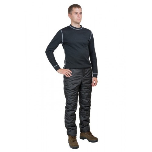 Обеспечивают защиту от холода, грязи и влаги. Верх брюк изготовлен из облегченной курточной ткани на основе полиэстера Polyester . Подкладка брюк: Taffeta , утеплитель AirFibre . Брюки прямого кроя с дополнительным объемом в зоне коленей. Пояс с застежкой на джинсовую пуговицу. Два кармана на молнии. Объем по талии регулируется резинкой и ремешками. Гульфик на молнии. Брюки подойдут для активного отдыха при температуре окружающей среды от -5 до -20°С.