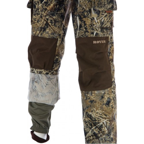 Брюки ХСН Ровер-универсальные предназначены для охоты, рыбалки, активный отдыха. Брюки из смесовой ткани Смесовая ткань с содержанием хлопка (35% хлопка и 65% полиэстера Polyester , плотность 240г/м2), с водоотталкивающей тефлоновой пропиткой Dupont Teflon , с пичэффектом. В качестве защитных элементов применяется прочная нешуршащая синтетическая ткань с мембраной Hi-Pora Cats Eye (водонепроницаемость 8000 мм, паропроницаемость 8000 г/(м2ч).