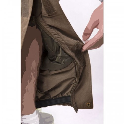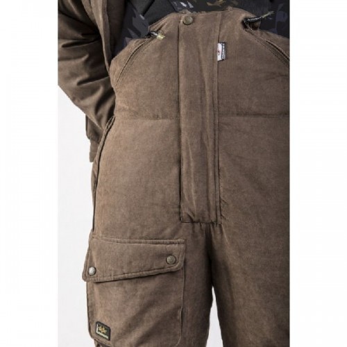 Модель хорошо отводит лишнюю влагу, даже при очень сильных нагрузках. Благодаря утеплителю брюки отлично сохраняют тепло. При помощи подтяжек брюки легко регулируются. По всей длине сбоку расположены молнии, это позволяет легко снять брюки. В брюках три кармана на молнии: два на талии, один на бедре, закрыт клапаном.