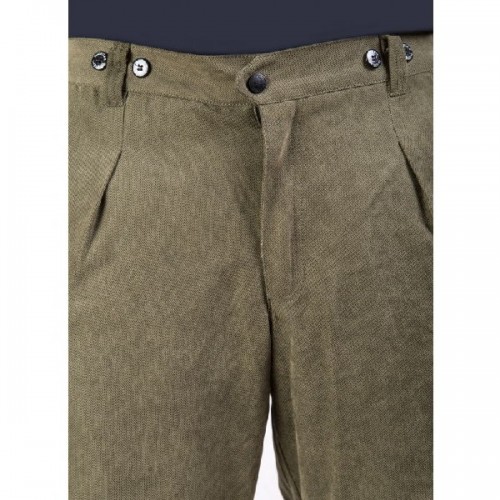 Низ брюк снабжен ремешками для хорошей фиксации к обуви. На модели есть поговицы для крепления подтяжек.