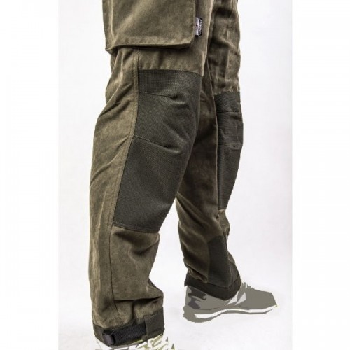 В области колен и внизу брючин обшиты материалом Kevlar . Штаны имеют высокую спинку, которая защитит поясницу от холода и ветра. Колени не натягиваются при сгибе ноги в колене.