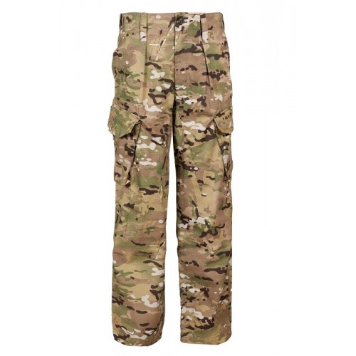 Смесовая ткань рип-стоп RipStop , т.е. для большей прочности армирована нейлоновыми нитями. Это позволяет изготовить достаточно легкие, но при этом очень прочные брюки.