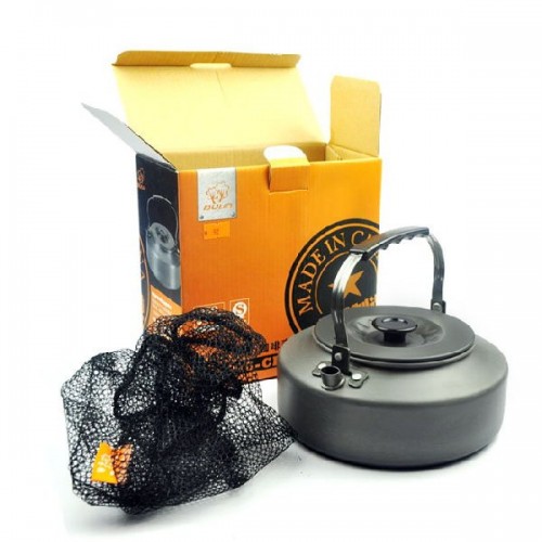 Небольшой чайник из алюминия, с анодированным покрытием изнутри и снаружи.
