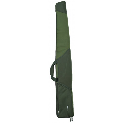 Материал - чрезвычайно прочный и устойчивый к царапинам, водонепроницаемый. Наплечный ремень с расширительным погоном и надежными пружинными защелками (карбинами). Мягкие ручки для переноски с "липучкой". Двойная молния во всю длину для удобства укладки/вынимания ружья, возможность применения навесного замка для фиксации закрытого положения молнии. Центральная часть усилена полужесткой вставкой для более надежной защиты ствольной коробки ружья.
