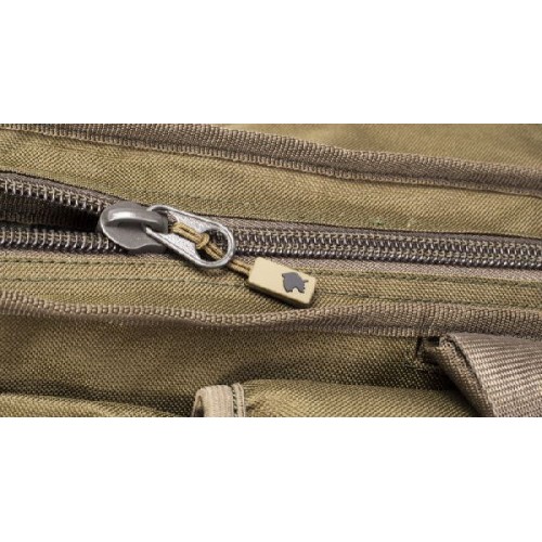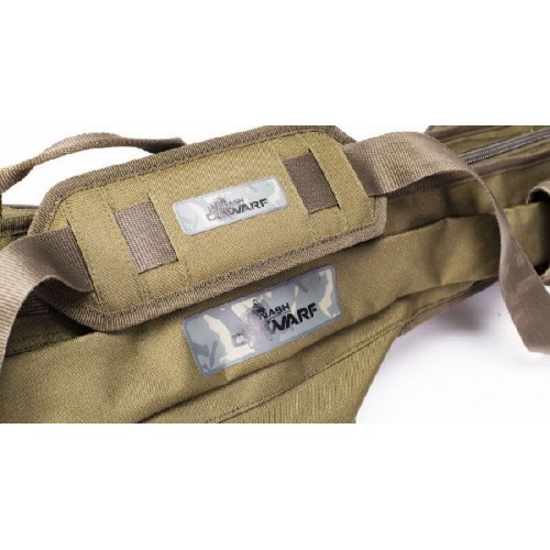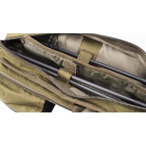 Основной отсек с застежкой на молнии с мягким разделителем защищает два готовых удилища с катушками. Две внешних застежки на молнии для палаточных аксессуаров и Dwarf Landing Net (подсак). Ручки и съемный мягкий регулируемый плечевой ремень. Бронированная конструкция 600D, усиленная, двойная сшитая в точках напряжения и с большими молниями.