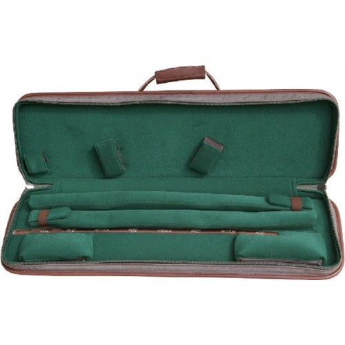 Изготовлен в традиционной форме из специальной ткани и натуральной кожи. Предназначен для хранения и транспортировки оружия в разобранном виде с двумя сменными стволами. Объёмные чехлы для ружей выполнены из натуральной кожи и прочной износостойкой синтетической ткани, которая не промокает, не истирается и легко очищается от загрязнения. Конструкция чехлов и применяемые промежуточные материалы обеспечивают повышенную формоустойчивость. Изнутри проклеен пенополиэтиленом и обшит автовелюром, который не боится масла и влаги. В комплекте поставляется ремень для оружия. Компактная форма чехла незаменима при ношении и не привлекает внимания.
