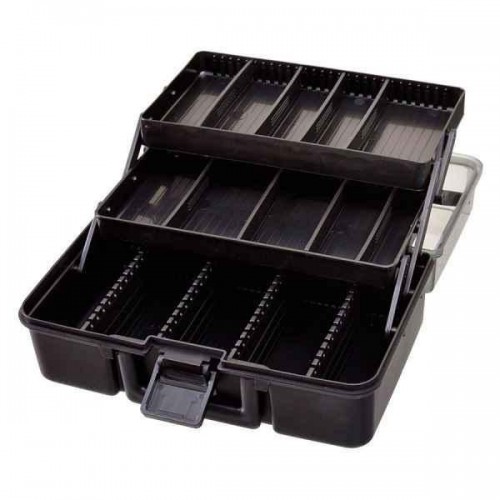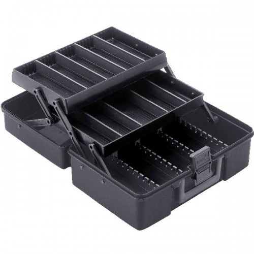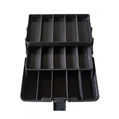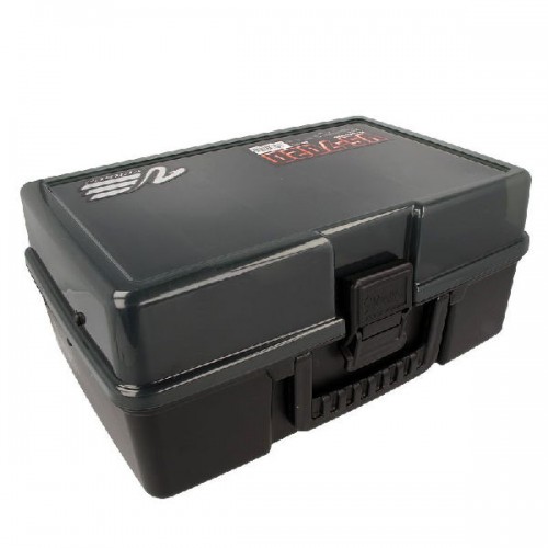 Оригинальное сочетание классического ящика с выдвижными полками и чемоданчика. Сама идея того, что такую конструкцию можно носить в боковом положении (как чемодан) – лишнее доказательство того, насколько точно и плотно прилегают полки друг к другу и насколько прочен замок с металлическими штифтами, удерживающий верхнюю и нижнюю части ящика-чемодана. Ребристая ручка из плотного и одновременно упругого пластика не позволит ящику выскользнуть из ладони, даже если она влажная. Материал чемодана - ударопрочный сополимер Shock-resistant Copolymer .
