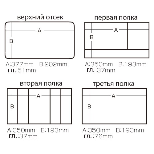 - две верхние выдвижные полки глубиной по 3,7 см