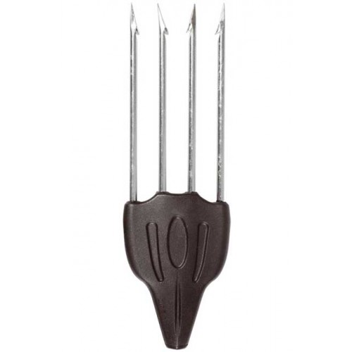 Закаленный четырехзубец с пластиковым основанием. Снабжен гидродинамическими каналами для увеличения скорости и точности выстрела. Изготовлен с применением современных и качественных материалов, таких как анодированная сталь.