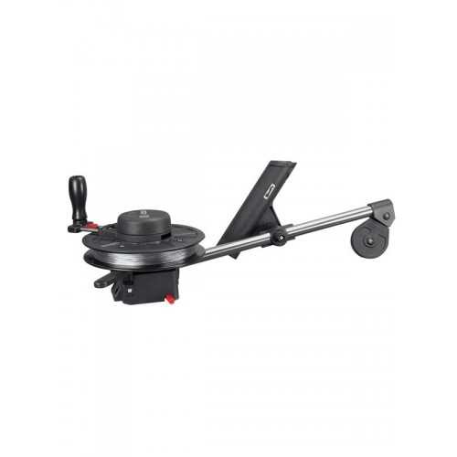 Когда рыба клюет, то она дергает за лесу, которая освобождается из клипсы, закрепленной на тросике. Нагрузка на лесу резко уменьшается и удилище, стремясь выпрямиться, подсекает рыбу. Теперь троллингисту остается только взять нужный спиннинг в руки и вываживать пойманную рыбу. Установка с даунриггером обычно монтируется на корме судна или в кормовой его части. Scotty 1080 DPR - прибор для средних и больших катеров для троллинга до 50 метров. Короткая штанга c установленным держателем спиннинга. Система крепления 1023 для установки и грузовая клипса 1170 - входят в базовую комплектацию.