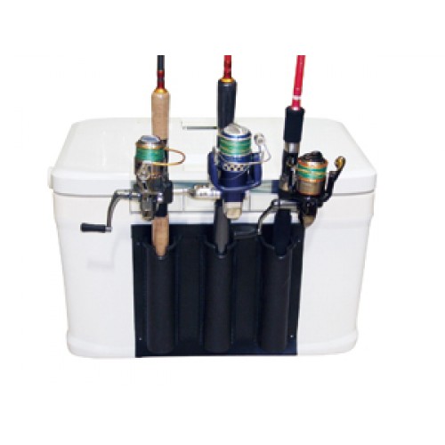 Держатель для удилищ для ящика Taka T-96 Rod Stand крепится с помощью шурупов и липучек. Он сделан для подручного и комфортного удерживания удилищ.
