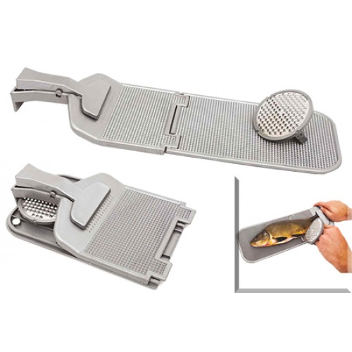 Сама доска изготовлена из пищевого пластика, материала повсеместно применяющегося при упаковке и хранения еды. Данный полимер абсолютно безвреден для человека и окружающей среды, не обладает запахом и очень легко моется. Поверхность доски покрыта крупными зубцами, которые в сочетании с мощной прищепкой отлично удерживает даже самую скользкую рыбу. Инструмент можно смело брать с собой на рыбалку. Он обладает очень компактной складной конструкцией, которая не займет много места в любой сумке или рюкзаке. Размер в разложенном: 480x150 мм. Размер в сложенном: 250x150 мм.