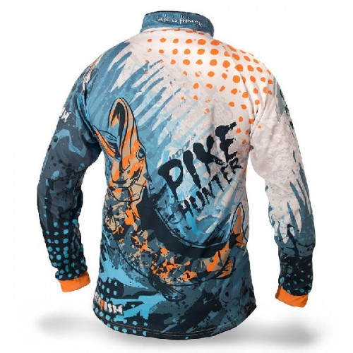 Защита – как от солнечных лучей, так и от холода. По форме и крою, это Джерси из специальной ткани, которая обладает особыми свойствами. Это специальная дышащая ткань, которая защищает от солнечных лучей. Удлиненная часть спины, защитит от ветра. Такую одежду выбирают не только рыболовы-спортсмены, но и обычные спортсмены и даже байкеры, которые должны чувствовать себя уверенно и хорошо за рулем своего байка. Ну а если Вы рыболов-байкер, эта кофта именно для Вас! J Джерси обладает особым стилем воротника, за счет чего закрывается грудная клетка и горло и меньше будет вероятность простудиться. Удобные манжеты и длинные рукава позволят защитить кожу от ветра и солнца. Рисунок не выгорает.