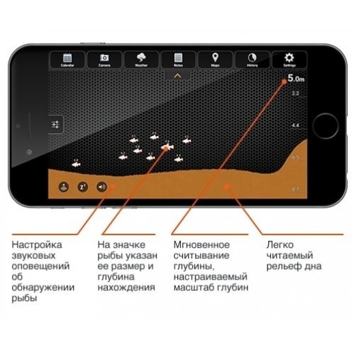 Легкий вес эхолота (64г) исключает вероятность обрыва лески при его забрасывании;