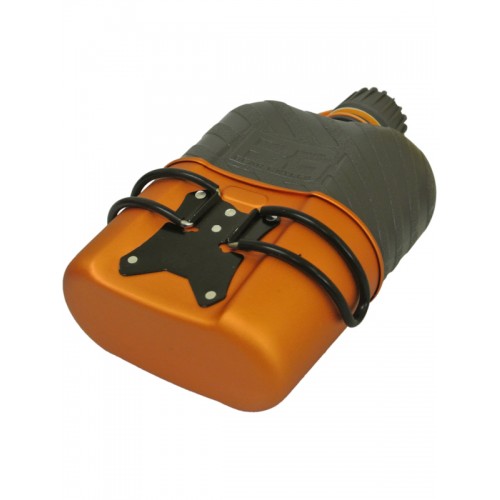 Bear Grylls Canteen Gerber - универсальное решение в случае отсутствия воды или вероятности того, что вы не сможете ее достать во время путешествия. Американское качество от компании с почти столетней историей. Алюминиевый котелок с ручками, в котором можно вскипятить воду, в другом случае он может служить вам кружкой. Экологически чистый материал, из которого изготовлена фляга. Надо заметить, что многие производители игнорируют стандарты, согласно которым материал, из которого сделана фляга, не должен содержать бисфенол. Бисфенол уже объявлен токсичным в Северной Америке и Европе. Bear Grylls Canteen не содержит в своем составе бисфенол или другие токсических соединения, поэтому использования фляги абсолютно безопасно для вашего здоровья. Четкая текстура стенок фляги предотвращает ее скольжения – она никогда не выскользнет из ваших рук, а драгоценная вода останется внутри сосуда. Компактность. Объем фляги равен 1 литру. Кроме того к набору из котелка и фляги прилагается удобный нейлоновый крепкий и надежный чехол. Чехол выдержит полную воды фляжку и позволит вам дополнительно укомплектовать его в соответствии с вашим нуждами. В небольшие карманчики можно положить деньги, спички, зажигалку или маленький нож. Размеры: 254 x 152 x 76 мм.
